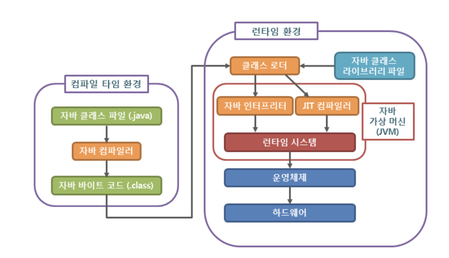 자바는 컴파일 타임 환경과 런타임 환경 두개로 나누어지는군요.