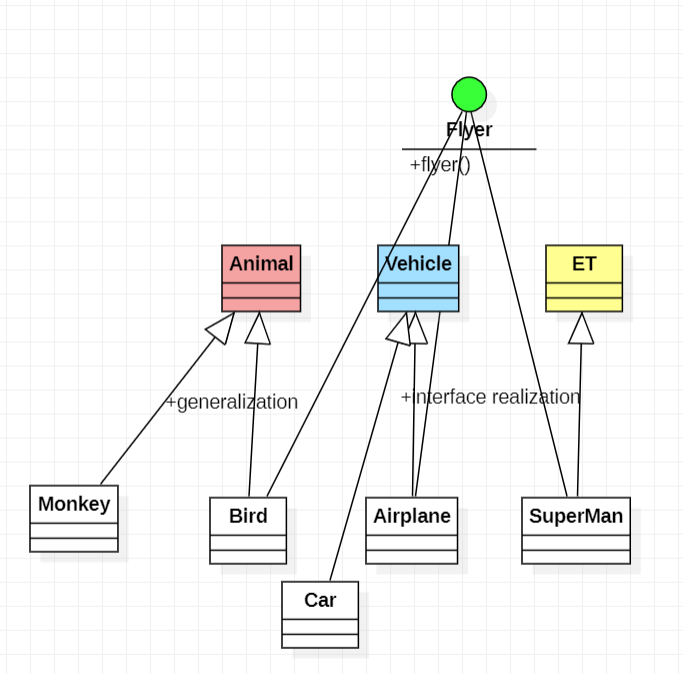 원숭이, 새, 비행기, 자동차, 슈퍼맨 이라는 class를 생성하기 위해서