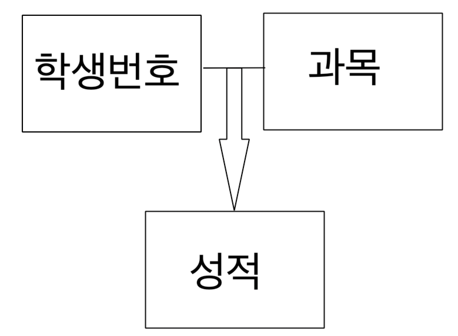성적의 값은 학생번호와 과목의 종속 값이고, 지도교수는 과목의 종속 값입니다.