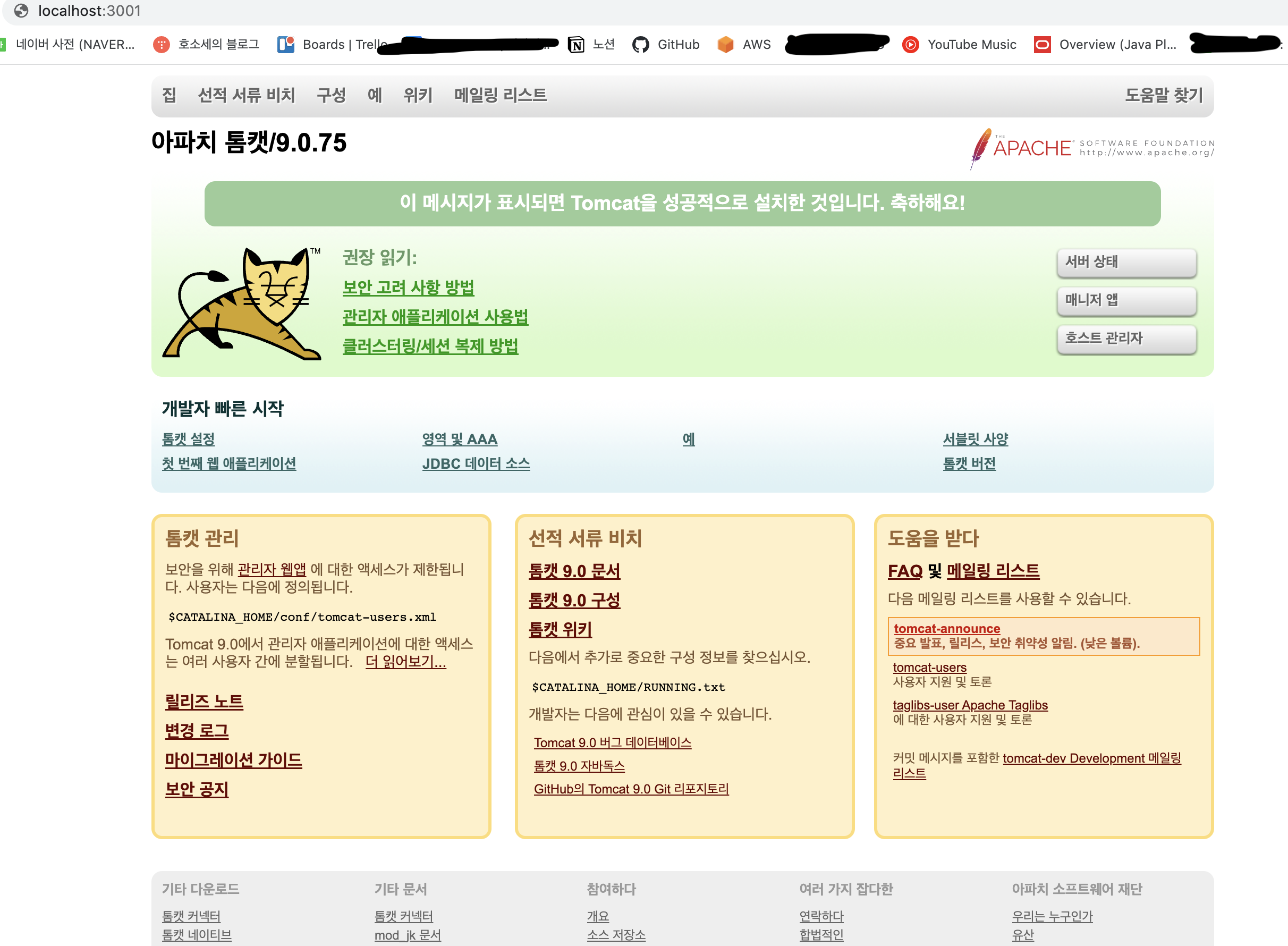 이렇게 하면 apache tomcat이 짜잔 하고 나옵니다.