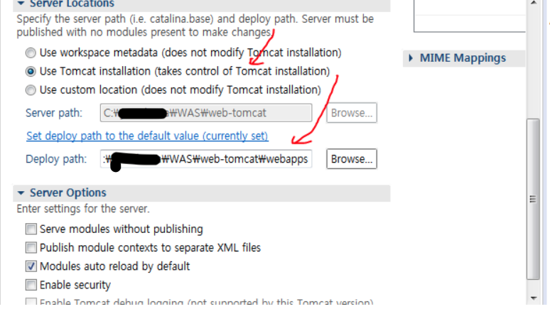 생성된 tomcat 서버 클릭해 보면 이러한 설정 창이 뜨는데