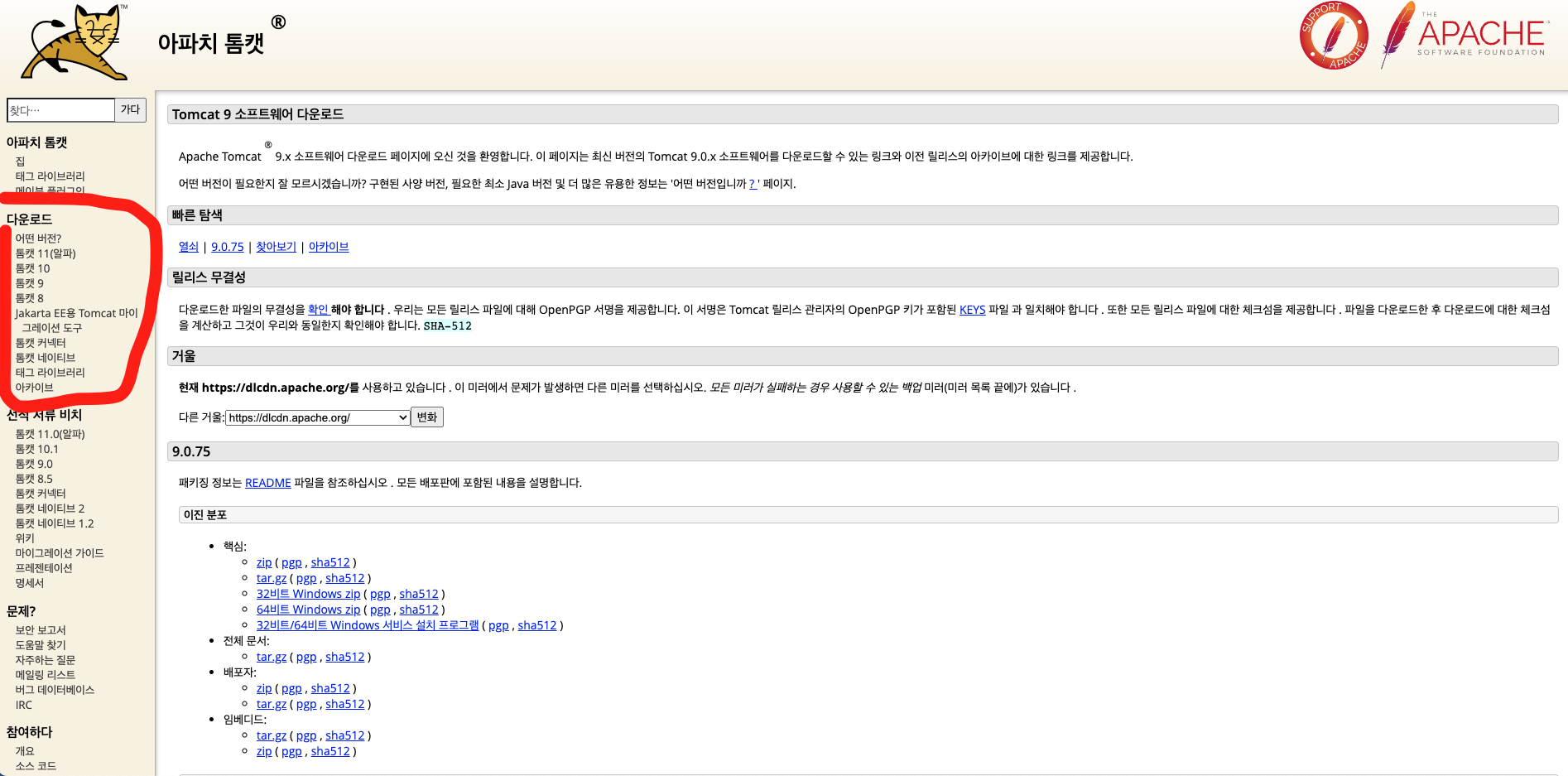 빨간 표시한 곳에서 버전 찾아서 다운로드하시면 됩니다. 아! 어떤 것을 다운로드해야 하면요.
