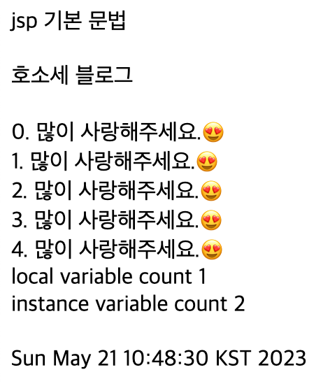 <%=i%>. 많이 사랑해주세요.😍 <br>