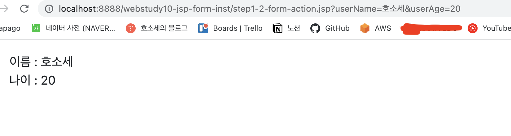 form tag 안에 input 박스에 userName과 userAge 를 넣어서 /step1-2-form-action.jsp 에 보내는 것입니다.