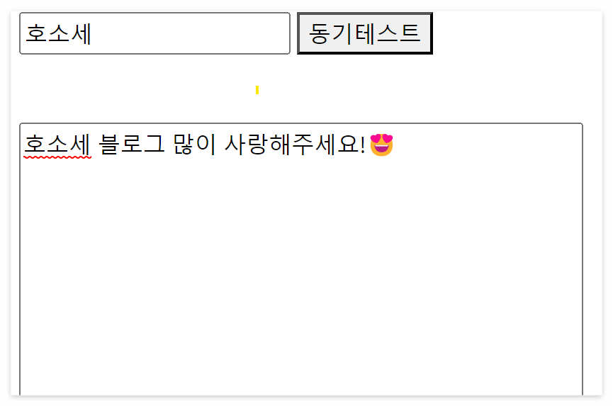 하지만 저 버튼이 비동기처리가 아닌 동기처리면.... 새로운 페이지를 받아서 자신이 작성했던 글을 날려먹을 수도 있는 상황이 나오게 됩니다. (이 페이지는 SynServlet을 통해 생성된 페이지입니다.)