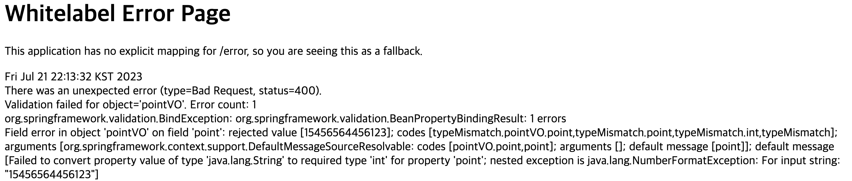 // pointVO.setId(null);//테스트를 위해 고의로 문제를 발생