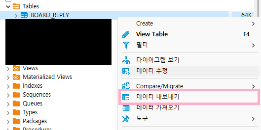 1. 데이터 내보내기 클릭