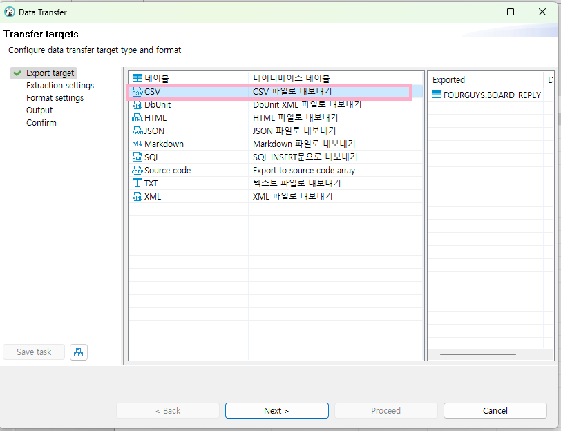 2. CSV 파일로 내보내기 클릭 → Next 클릭