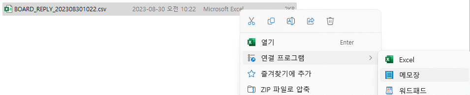 1. 먼저 저장된 폴더에 들어가서 파일을 확인하고 메모장으로 연결해줍니다.