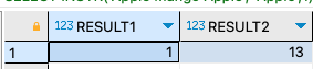 , INSTR(UPPER('Apple Mango Apple'), 'APPLE') AS result2