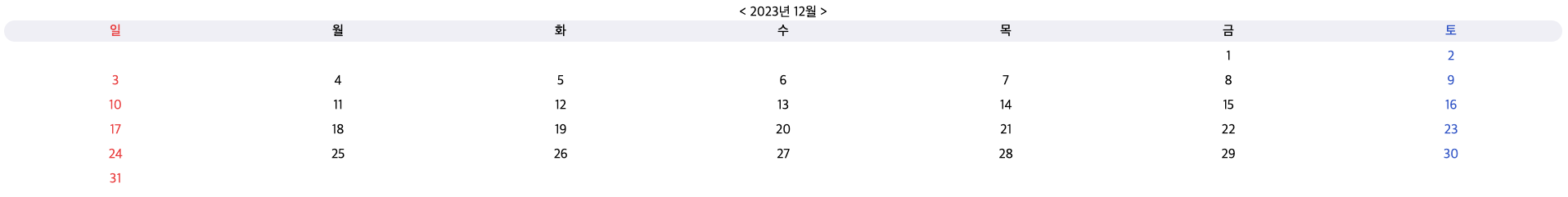 23년 12월이면 1일 ~ 31일까지 표시되겠죠?