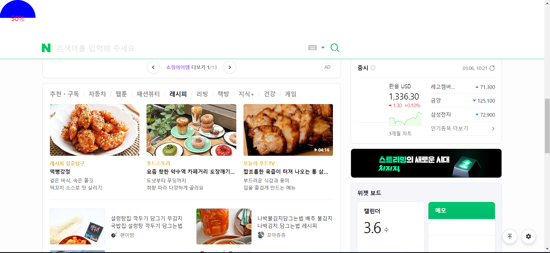네이버 창을 열고 개발자 도구에서 header쪽에 bar를 추가하고 (div 태그)