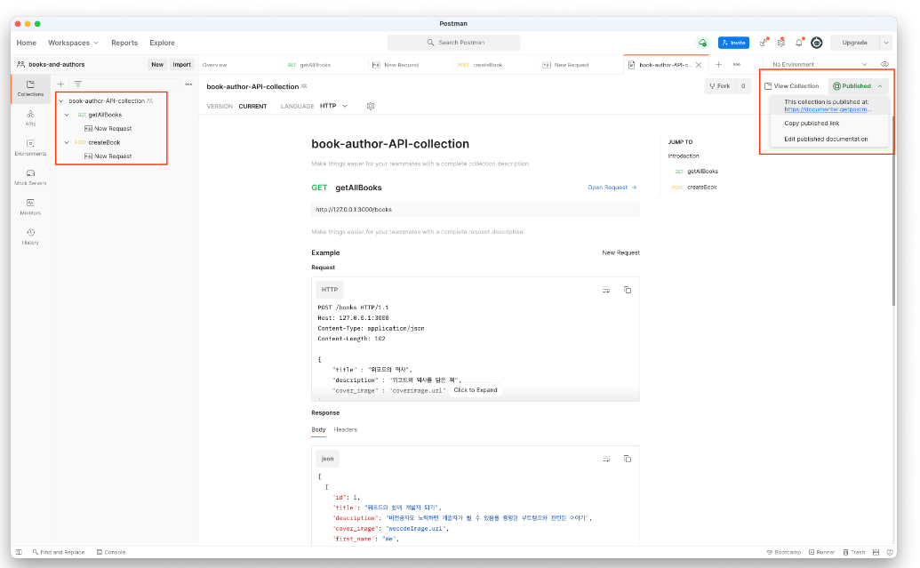 Postman을 이용한 API Documentation